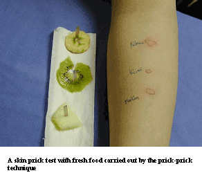 La prueba consiste en provocar una reacción alérgica en la epidermis del paciente al añadir una pequeña gota de alérgeno en la piel, en general se aplica una batería de extractos alergénicos. Se hace una punción en el ante-brazo con una lanceta sobre la gota del alérgeno. Éste penetrará por debajo de la piel, pasados entre 15 y 20 minutos, se realiza la «lectura de las pruebas, se mide el tamaño de la reacción, comparándola siempre con un control positivo y un control negativo y si el paciente es alérgico, se producirá una pequeña reacción alérgica en la piel del paciente (habón).